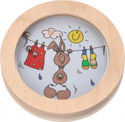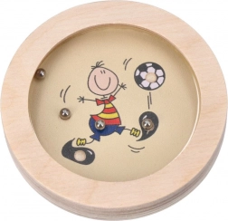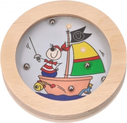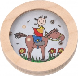 Dette træspil med temaet Glade figurer er designet til ikke blot at underholde, men også til at støtte udviklingen af finmotorik. Spillet kræver, at børn flytter små metalkugler ind i fordybninger på legetøjets overflade, som er dækket af en sikker gennemsigtig plast. Takket være det robuste træmateriale er legetøjet holdbart og velegnet til hyppig brug.