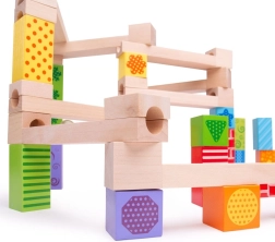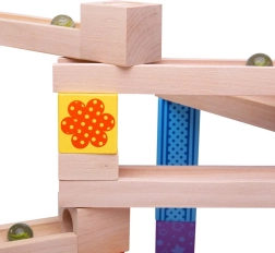 Bane støtter rummelig orientering, finmotorik og logisk tænkning. Børn vil blive fascineret af, hvordan kuglerne ruller blidt ned ad banen, de selv har skabt.