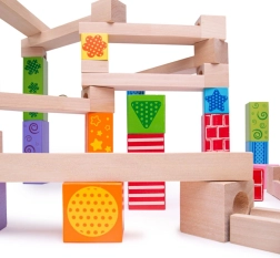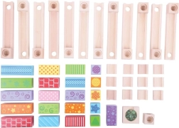 Denne træ kuglebane er ideel til kreative børn, der elsker at bygge deres egne baner. Indeholder 53 dele, som giver mulighed for mange variationer og designs baseret på børns fantasi.
