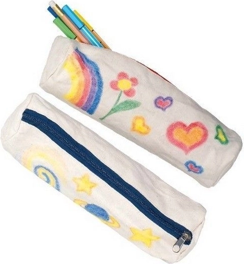 Pennal med børnetegninger af sol, skyer, træer og huse. Giver plads til kreativitet og støtter dit barns kunstneriske udtryk.