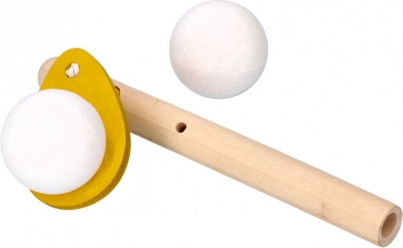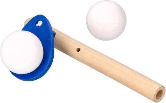 Blæs, vip, ånd ud og se, hvordan bolden svæver elegant! Denne træbaserede blæseleg understøtter korrekt vejrtrækningsteknik, styrker lungerne og giver masser af sjov for både børn og voksne. Ved at ændre rørets hældning regulerer du sværhedsgraden og træner reaktionsevne og stabil vejrtrækning.