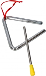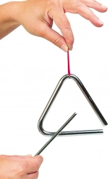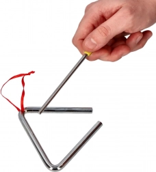 Hold trianglen i den røde snor og slå let med slagpinden – selv små børn kan nemt frembringe en smuk, langt efterklingende lyd, der styrker rytmefornemmelsen.