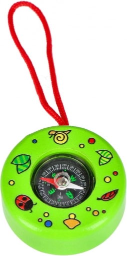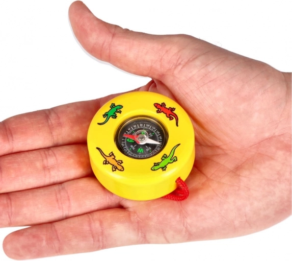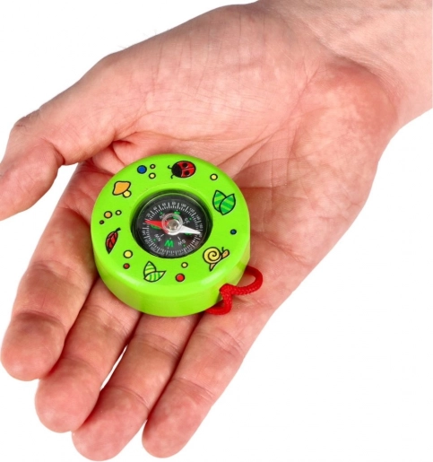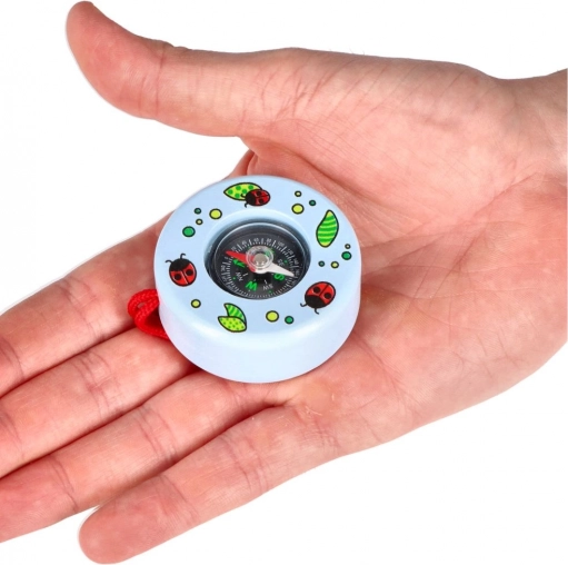 Der medfølger en sikker rød snor til at hænge om halsen eller på rygsækken, så kompasset altid er lige ved hånden. De kompakte mål Ø 5 cm passer godt i et barns hånd og lomme. Velegnet til børn fra 3 år.