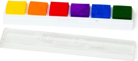 Praktisk organizer med blækpuder i gul, orange, rød, lilla, blå og grøn. Aftageligt blæk for nem rengøring og rene aftryk.