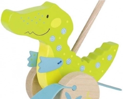 Den søde skubbeleg i form af en krokodille af massivt træ glæder alle små opdagelsesrejsende. Når den kører, klasker krokodillens poter muntert mod jorden, hvilket motiverer børn til bevægelse og leg. Legetøjet understøtter grovmotorik, koordination og balance og er perfekt til de første skridt.