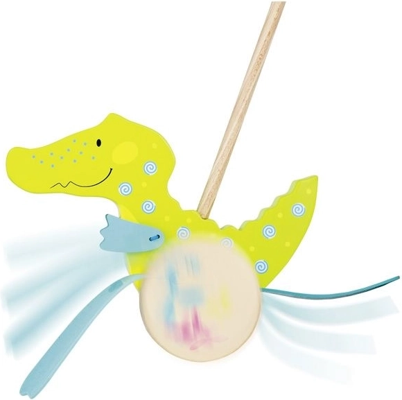 Trækrokodillen på stang fra GOKI er et farverigt skubbelegetøj, der fanger børn med bevægelige finner og en glad klaplyd under kørsel. Takket være den lange stang har børn legetøjet hele tiden i øjenhøjde og kan lettere styre deres opdagelsesrute. Kvalitets massivt træ og omhyggelig forarbejdning sikrer lang holdbarhed og sikker leg.