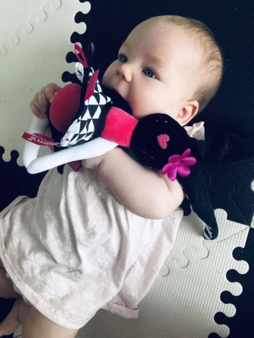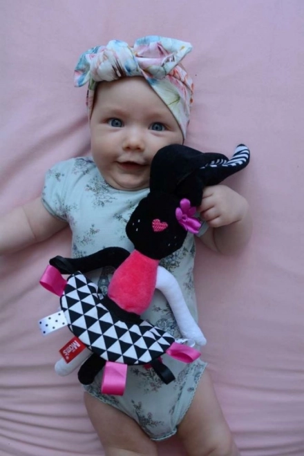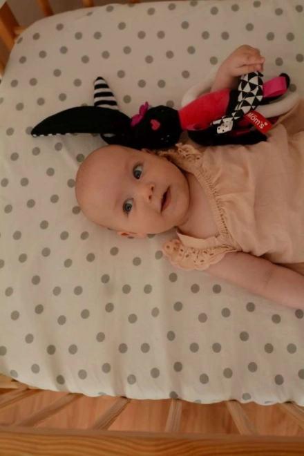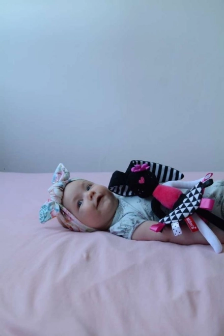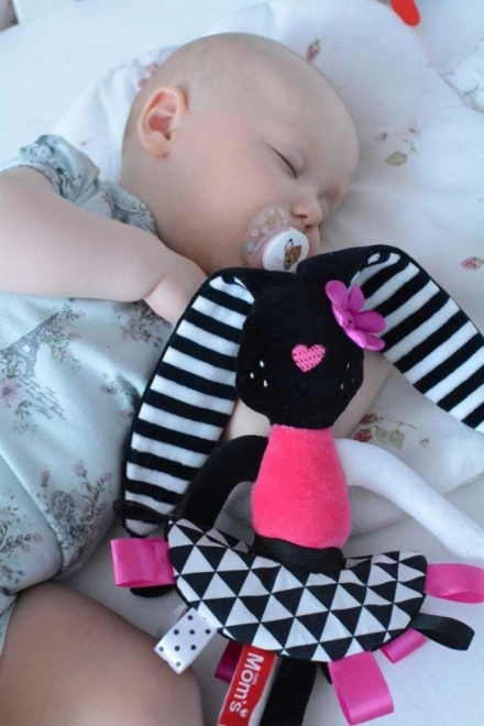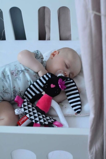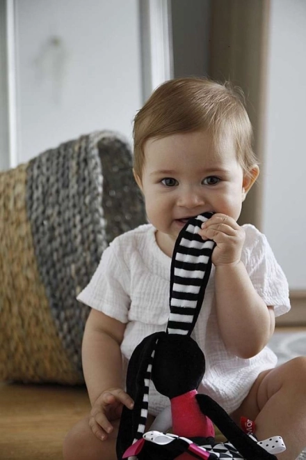 Den søde sensoriske plysbunny er den ideelle første ven for nyfødte. Den kombinerer kontrastfyldte sort-hvide mønstre, forskellige teksturer og knitrende elementer for alsidig stimulering af syn, hørelse og berøring. Den er blød, sikker fra 0+ og fremstillet af certificerede materialer, skånsomme mod spædbarns hud.