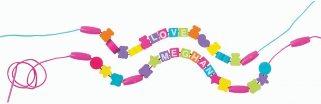 Med farverige alfabetperler og former kan børn lave unikke halskæder og armbånd.