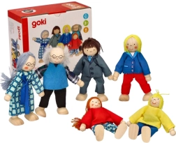 Oplev charmen ved familiespil med det klassiske Goki-dukkesæt. Seks omhyggeligt fremstillede figurer – bedstemor, bedstefar, mor, far, datter og søn – understøtter fantasi, kommunikationsevner og social læring. Takket være de bøjelige lemmer kan de nemt indtage forskellige positioner og tilpasses enhver scene i børnenes dukkehus.