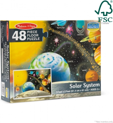 Udforsk universets hemmeligheder med vores gulvpuslespil om solsystemet. Dette puslespil med 48 brikker er ideelt til små opdagelsesrejsende, der vil lære om planeter, solen og månen i et farverigt og interaktivt format.