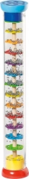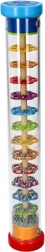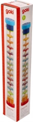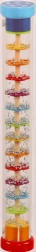 GOKI regnstav er et smukt udført sanselegetøj, der ved at vende det gennemsigtige rør efterligner lyden af faldende regn. Kuglerne siver gennem lag af farvede blomster og skaber beroligende, naturlige lyde, som fascinerer børn og støtter deres koncentration.