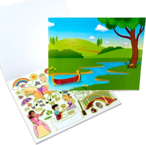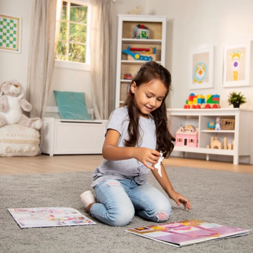 Dette kreative sæt bringer charmerende scener fra prinsessernes verden, tronsale og kongelige gemakker. De genanvendelige klistermærker kan nemt flyttes, kombineres og lagvis arrangeres, så hver leg bringer en ny historie. Ideelt derhjemme, på farten og som gave til små eventyr-elskere.