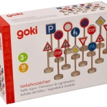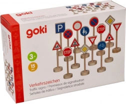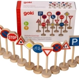 Opdag det sjove og lærerige sæt med Goki trætrafikskilte, som hjælper børn med at lære færdselsregler gennem leg. De robuste skilte i massivt træ med ugiftige farver er ideelle til leg med biler og på racerbane. De er nemme at holde, har en højde på 11 cm, og i pakken finder du 15 styk til realistiske trafiksituationer.