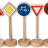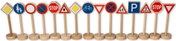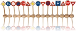 Indeholder et varieret udvalg af skilte som Stop, Fodgængerfelt og Parkering. Højden på hvert skilt er 11 cm for let håndtering.