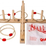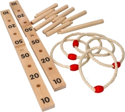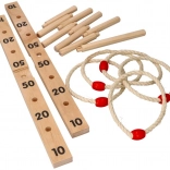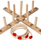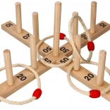 Dette spil indeholder en krydsformet base med 9 træpinde og fem snorringe med et træelement for nemmere kast. Spillet er lavet af kvalitets træ, hvilket sikrer langvarig underholdning.