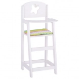 En stilfuld høj stol til dukker i den sarte Susibelle-kollektion vil glæde små “forældre” med realistisk leg. Den er lavet af kvalitetstræ i skandinavisk design, har afrundede kanter for sikkerhed, og der medfølger en farverig pude. Højden på stolen er ca. 51 cm, så den passer perfekt på børneværelset og i legekrogen.
