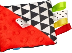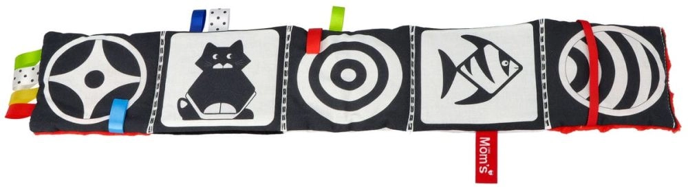 Sort-hvide motiver med røde accenter fanger nyfødtes opmærksomhed og hjælper med at udvikle skarphed i synet og sporing af objekter.