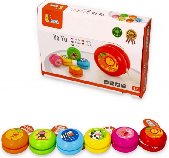 Oplev tidløs underholdning med en træyo-yo, der er ideel til både små og større begyndere. Den glatte trækrop ligger behageligt i barnets hånd, og den stærke snor sikrer en jævn bevægelse. Glade farver og de søde dyreillustrationer motiverer børn til nye forsøg og tricks.