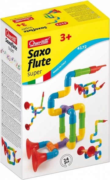 Børn kan med byggesættet Quercetti Saxoflute Super skabe deres egne musikinstrumenter, såsom saxofoner, fløjter og trompeter, af farverige plastikrør og stik. Sættet indeholder 24 dele, der muliggør forskellige kombinationer og former. Dette legetøj udvikler ikke blot kreativ tænkning, men også finmotorik og fantasi.