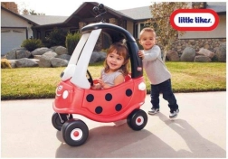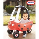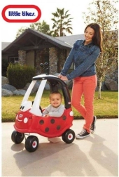 Den legendariske Cozy Coupe i et charmerende mariehønedesign er ideel til de første ture i haven og gåture med forældre. Børn kan drive bilen frem med egne ben, eller en voksen kan skubbe den som en vogn. Takket være den stabile konstruktion og gennemtænkte detaljer klarer selv mindre børn kørslen.