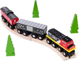 Træjernbanen CN bringer sjove og kreative øjeblikke til dine børn. Den består af et godstog og skinner, som børnene nemt kan samle og udvide med andre tilgængelige sæt. Dette legetøj: