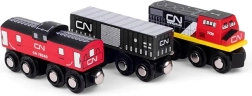 Denne træjernbane CN er en fantastisk legetøj til børn, der udvikler deres fantasi og motoriske færdigheder. Den er lavet af højkvalitets naturlige materialer og kan kombineres med andre træjernbaner på markedet.