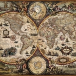 Dette motiv af et historisk kort giver ikke kun underholdning, men også en pædagogisk dimension – under samlingen opdager du detaljer om kontinenter, have og dekorative illustrationer i klassisk stil. Det færdige puslespil egner sig perfekt til indramning som en stilfuld vægdekoration.