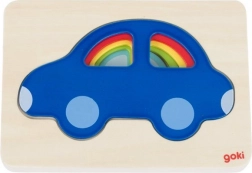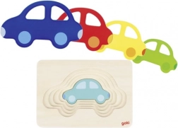 Opdag et sjovt og lærende legetøj til de mindste: et lagdelt træpuslespil formet som en bil fra GOKI. Børn træner på legende vis deres finmotorik, farvegenkendelse og forståelse af størrelser. Den robuste bundplade med kant sikrer stabil isætning, og hver lille bil passer præcist i sit lag.