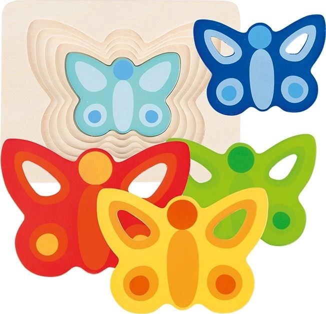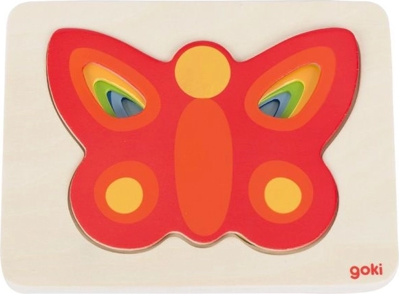 Opdag den legende, lagdelte puttekasse med farverige sommerfugle fra mærket GOKI. Børn får masser af sjov, mens de samtidig udvikler finmotorik, farvegenkendelse og logisk tænkning. Der er fem brikker, og i hvert lag passer kun én sommerfugl, hvilket styrker tålmodighed og sammenhængende læring.