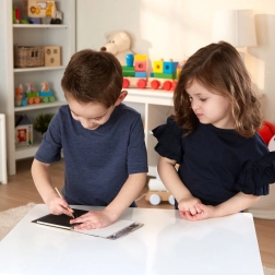 Uden maling og rod – en skrabbestylus er nok, og børn kan straks skabe hvor som helst, både hjemme og i skolen.