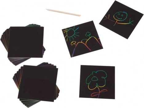 Scratch Art-sættet giver børn en unik måde at udtrykke deres kreativitet på med 100 kort, hvor de afslørede farver vil overraske enhver. Aktiviteten giver ikke kun sjov, men støtter også udviklingen af finmotorik og kreativ tænkning. Med kort i størrelsen 9 x 9 cm kan børn ikke blot skabe deres kunstværker, men også udstille dem.