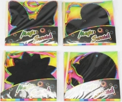 Nem proces, flot resultat – skrab langs de fortrykte linjer, og under den sorte overflade dukker regnbuefarverne op. De færdige billeder kan straks hænges op med de farvede bånd og pynte på børneværelset. Ideelt til kreativ leg derhjemme, i skolen eller på fritidshold.