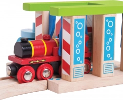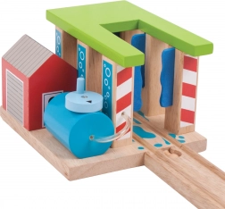 Denne trætogsvask fra BIGJIGS RAIL er et ideelt tilbehør til enhver børnetogbane. Med de roterende vaskesøjler kan gennemkørslen nemt varieres, hvilket understøtter kreativ leg og udviklingen af finmotorik. Den robuste udførelse og de livlige farver fanger opmærksomheden og inviterer til flere legescenarier.
