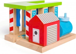 Produktet er fremstillet af kvalitetsmaterialer fra ansvarlige kilder og opfylder aktuelle europæiske sikkerhedsstandarder. Takket være de universelle mål er vasken kompatibel med de fleste træs skinner og togsæt på markedet. Tog medfølger ikke, hvilket gør det let at kombinere med eksisterende sæt.