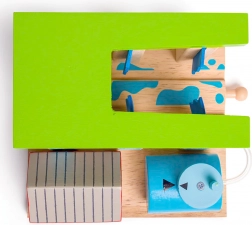 Juster søjlerne, så toget enten bare kører igennem, eller bliver “vasket” af børsterne. Børn vil elske at skifte scenarier og træner samtidig finmotorikken.