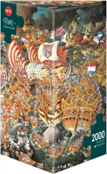 Puslespil Slaget ved Trafalgar af den berømte karikaturtegner Michael Ryba bringer dig til historiske øjeblikke med smuk grafik. Emballagen indeholder 2000 brikker og en utraditionel trekantet kasse med en plakat som guide til samling.