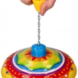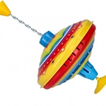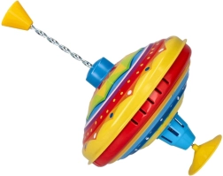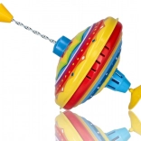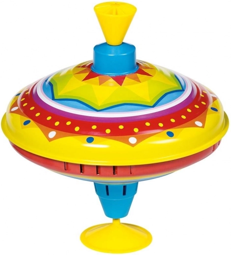 Snurretoppen har strålende farver som gul, blå og rød, der fanger ethvert barns opmærksomhed.