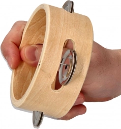 Tamburinen er lavet af naturligt træ, der sikrer holdbarhed og et æstetisk udseende.