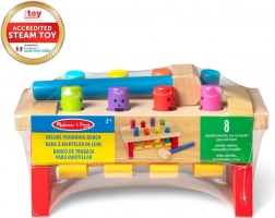 Denne træbankebænk tilbyder tidløs leg: Børn banker forsigtigt de farverige tapper ned i bænken med hammeren og skubber dem ud fra den anden side. Den robuste trækonstruktion og de glatte kanter sikrer sikker leg, mens de klare farver understøtter udviklingen af synssansen.