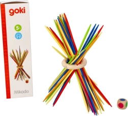 Det klassiske færdighedsspil MIKADO med ring fra GOKI glæder både små og store spillere fra 5 år. Pindene på 18 cm styrker finmotorik, tålmodighed og koncentration, og produktet opfylder CE-kravene.