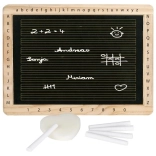 Denne trætavle er designet med fokus på nem håndtering og praktisk anvendelse for børn. Takket være de fortrykte linjer lærer børn hurtigt at skrive alfabetet. Sættet indeholder: