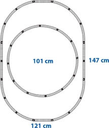 Skinnesystemet gør det muligt at skabe to kredsløb: et indre på 101 cm og et ydre på 147 cm.