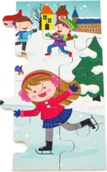 En farverig vinterscene med børn i sneen motiverer til at lægge puslespil og udvikler sans for farver, detaljer og situationer.