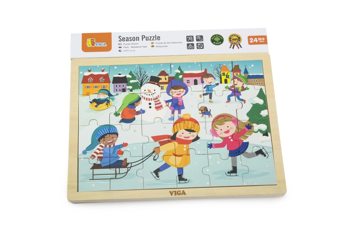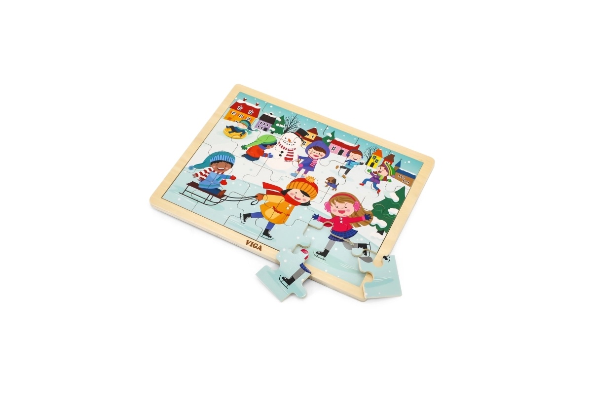 Dette træpuslespil med vintermotiv er et glimrende valg til børn fra 24 måneder. Størrelsen på de enkelte brikker er tilpasset små hænder, og den solide konstruktion sikrer lang holdbarhed. Med 24 brikker træner børn koncentration og får glæde ved det færdige billede.