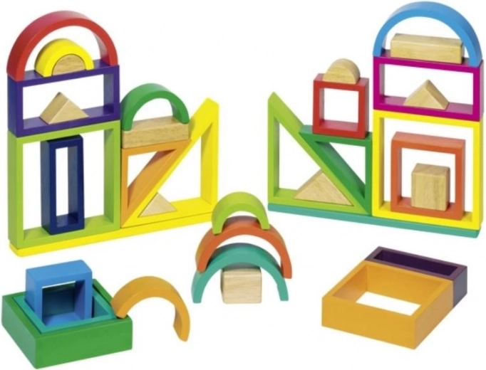 Goki Regnbue træbyggesæt giver børn uendelige muligheder for at bygge og lære gennem leg. Takket være 38 kvalitetsdele i livlige farver kan man nemt skabe originale kombinationer, som stimulerer fantasien og den visuelle opfattelse. De mange forskellige former og farver opmuntrer naturligt til eksperimentering og opdagelse.
