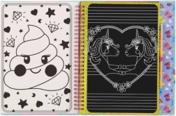 Skrabebogen med Enhjørningsmotiver tilbyder sjov og samtidig udvikler kreative evner. Takket være de hårde omslag og spiralbinding er den let at bladre igennem og ideel til rejser: