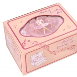 Elegant spille-smykkeskrin til små og store balletelskere. Når låget åbnes, danser ballerinaen, og melodien fra Svanesøen spiller. Indeni finder du praktiske rum, spejl og plads til ringe. Det sarte lyserøde design med blomster og balletmotiv pynter smukt på børneværelset og på toiletbordet.