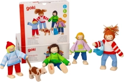 Dette kvalitetsforarbejdede sæt fra GOKI giver børn masser af muligheder for at lege familie, udflugter og camping. Trækroppe kombineret med tekstilt tøj føles behagelige at røre ved, og detaljer som farverigt, moderne tøj, pigens hestehaler, drengens kasket og aftagelig rygsæk gør legen autentisk.