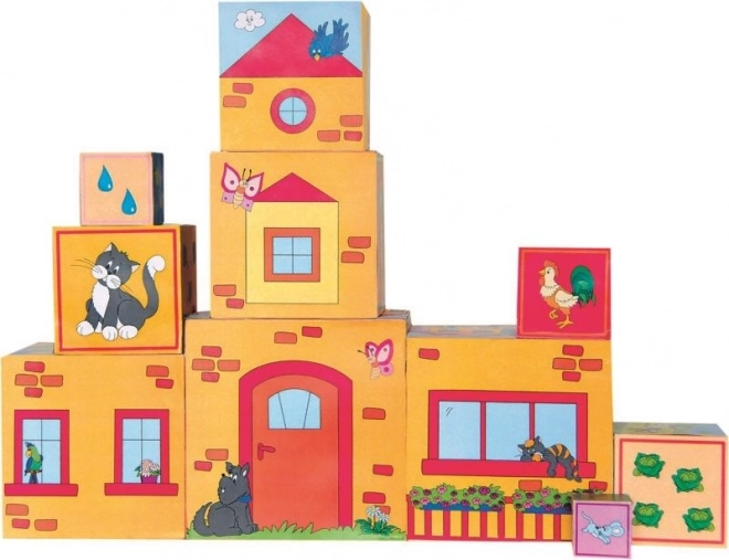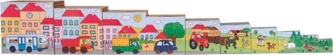 Disse trækopper i husform støtter læring gennem leg. Børn kan stable, indsætte og sortere kopperne, hvilket forbedrer hånd-øje-koordination, rumlig forestillingsevne og tålmodighed. Den lakerede overflade er glat og behagelig at røre ved.
