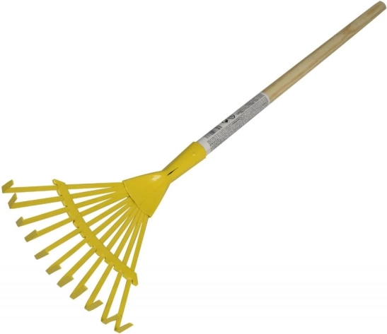 Denne WOODY løvrive til børn hjælper børn med at deltage i havearbejdet og efterligne de voksne ved rigtig rivning af blade og små urenheder. Takket være kombinationen af et metalhoved og et træskaft giver den både holdbarhed og et behageligt greb.